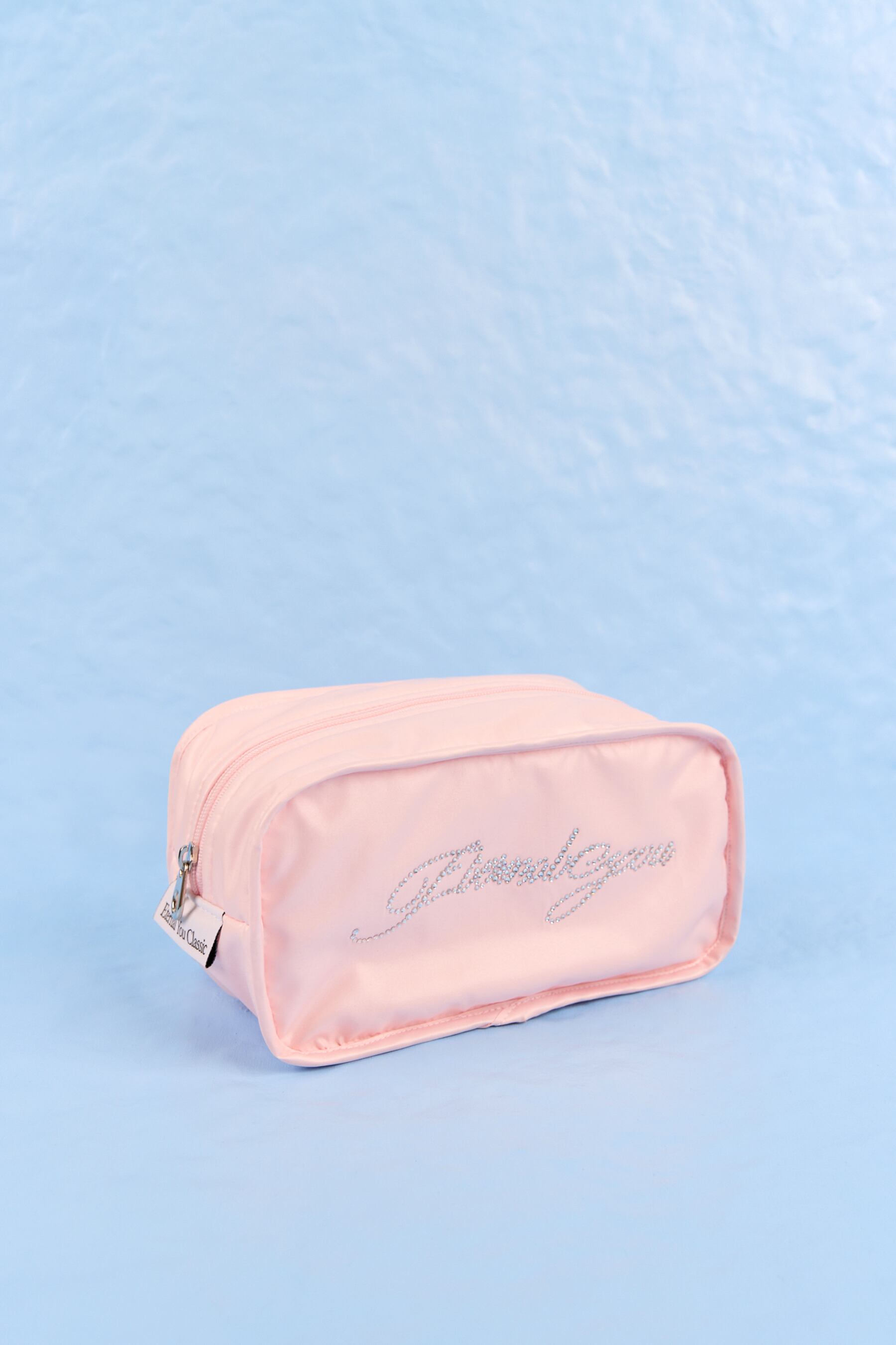 神秘的な光沢感、奥妙な色味の生地とその上に刻まれた輝くホットフィックスレタリングで完成した「RAVEENA POUCH」