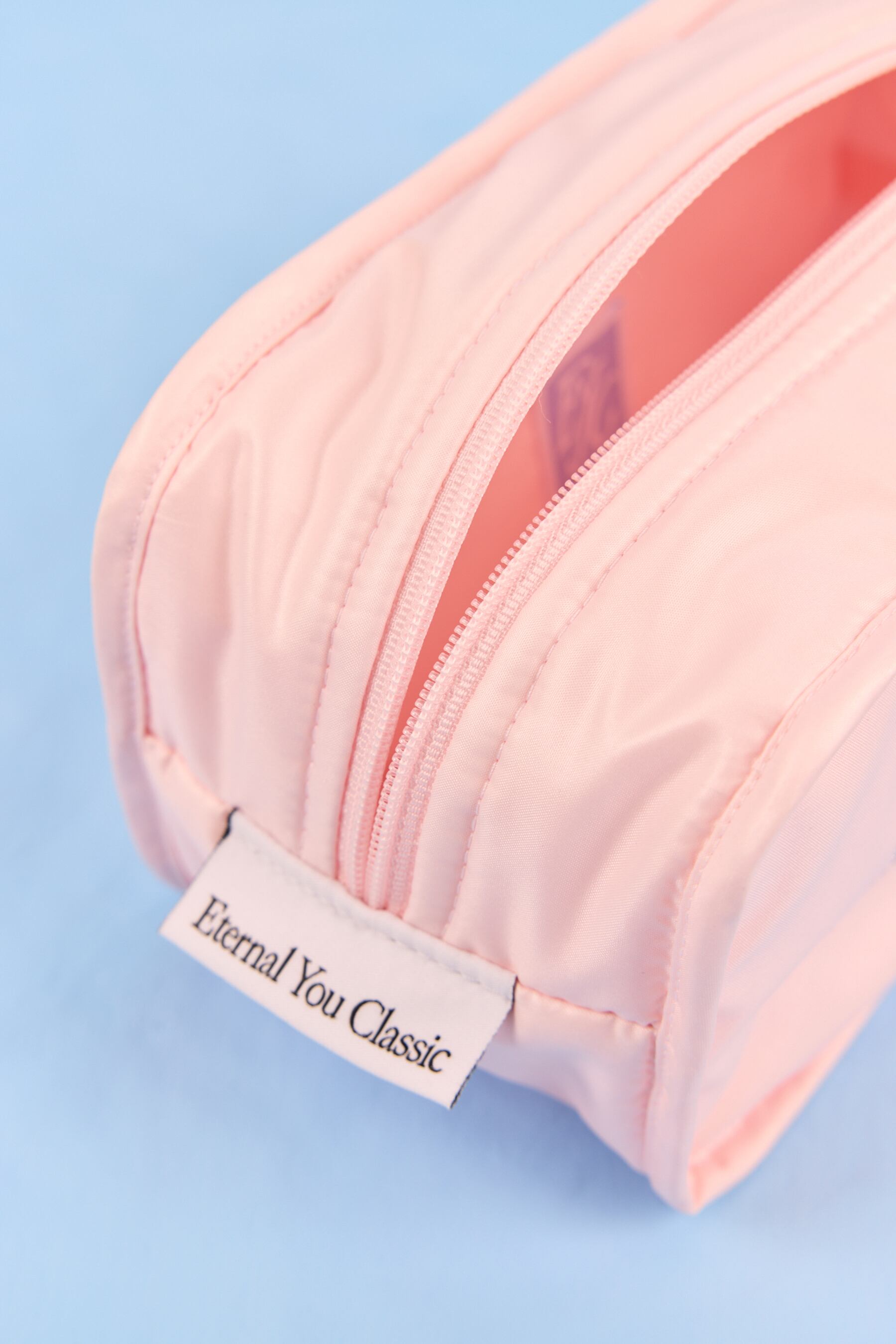 一見クラシックでシンプルな外観ですが、一般的なポーチと違って中と外が反転したようなデザインでETERNAL YOUの自由な視点を表現しました。