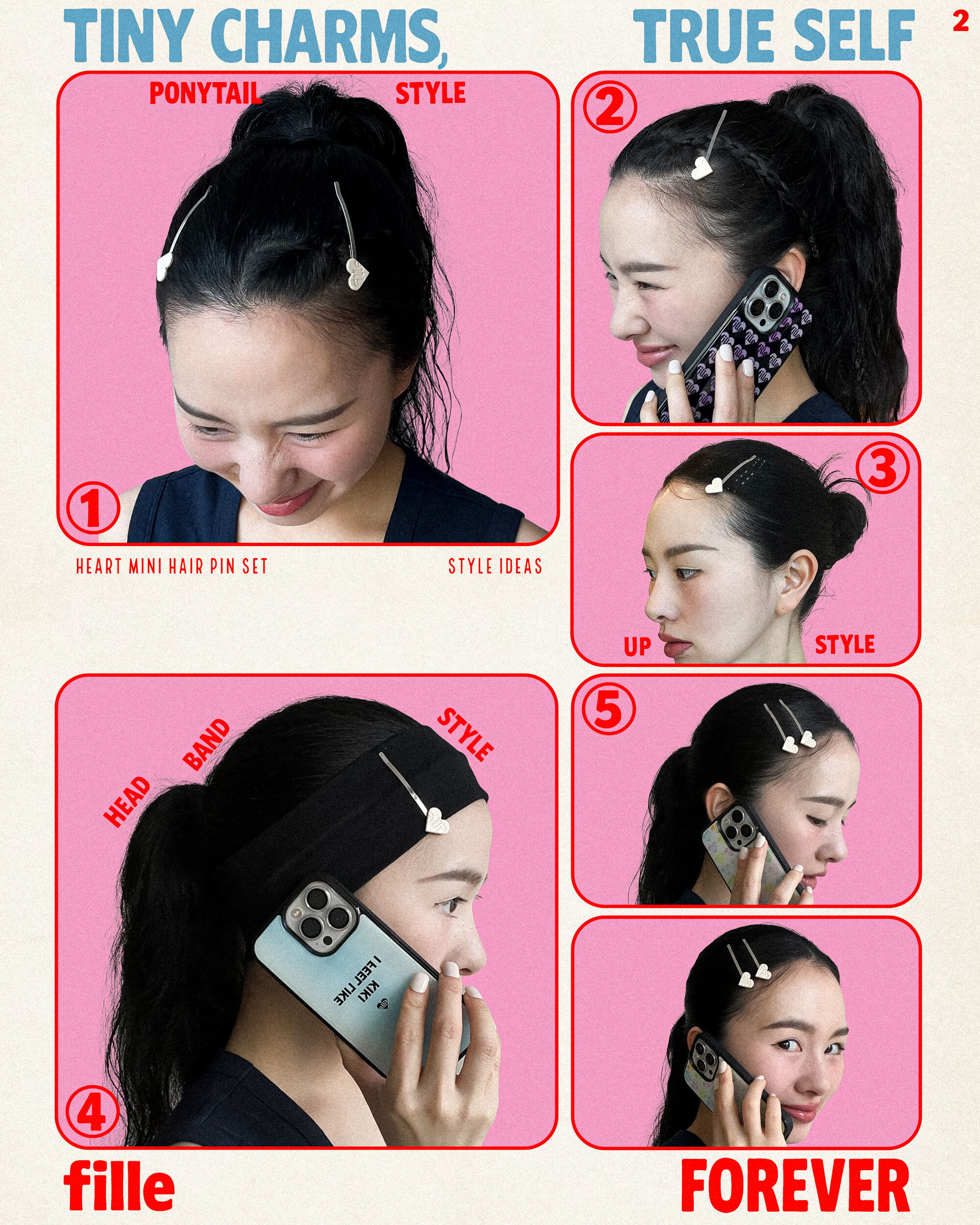 <fille> Heart Mini Hair Pin Set