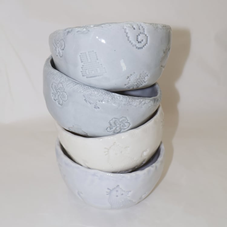 デザインから土の練り上げ、成形、彩色、釉掛けまで、すべて作家の手で仕上げています。そのため工業製品のように均一ではなく、同じデザインでも一点ごとに形や表情が異なります。
