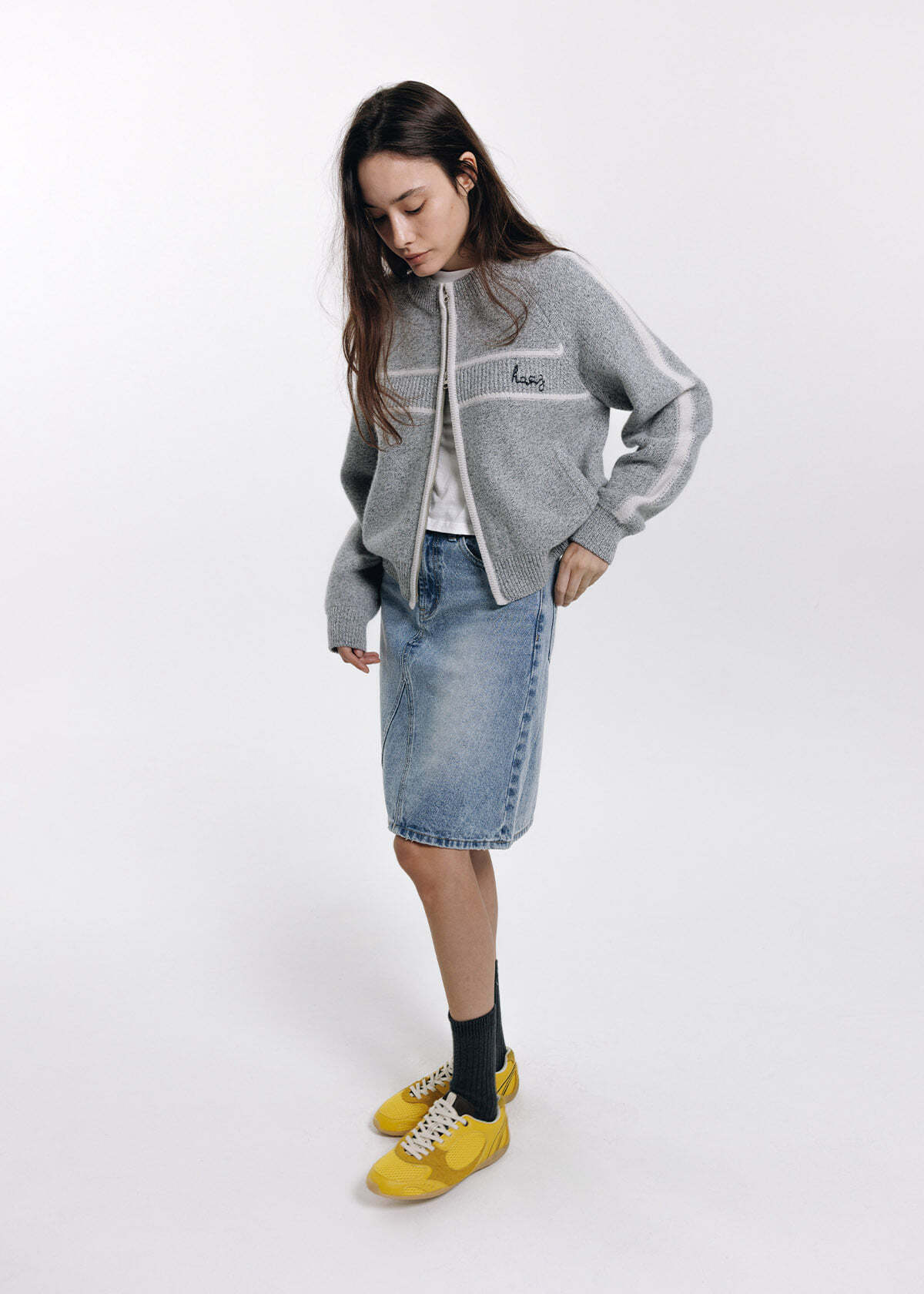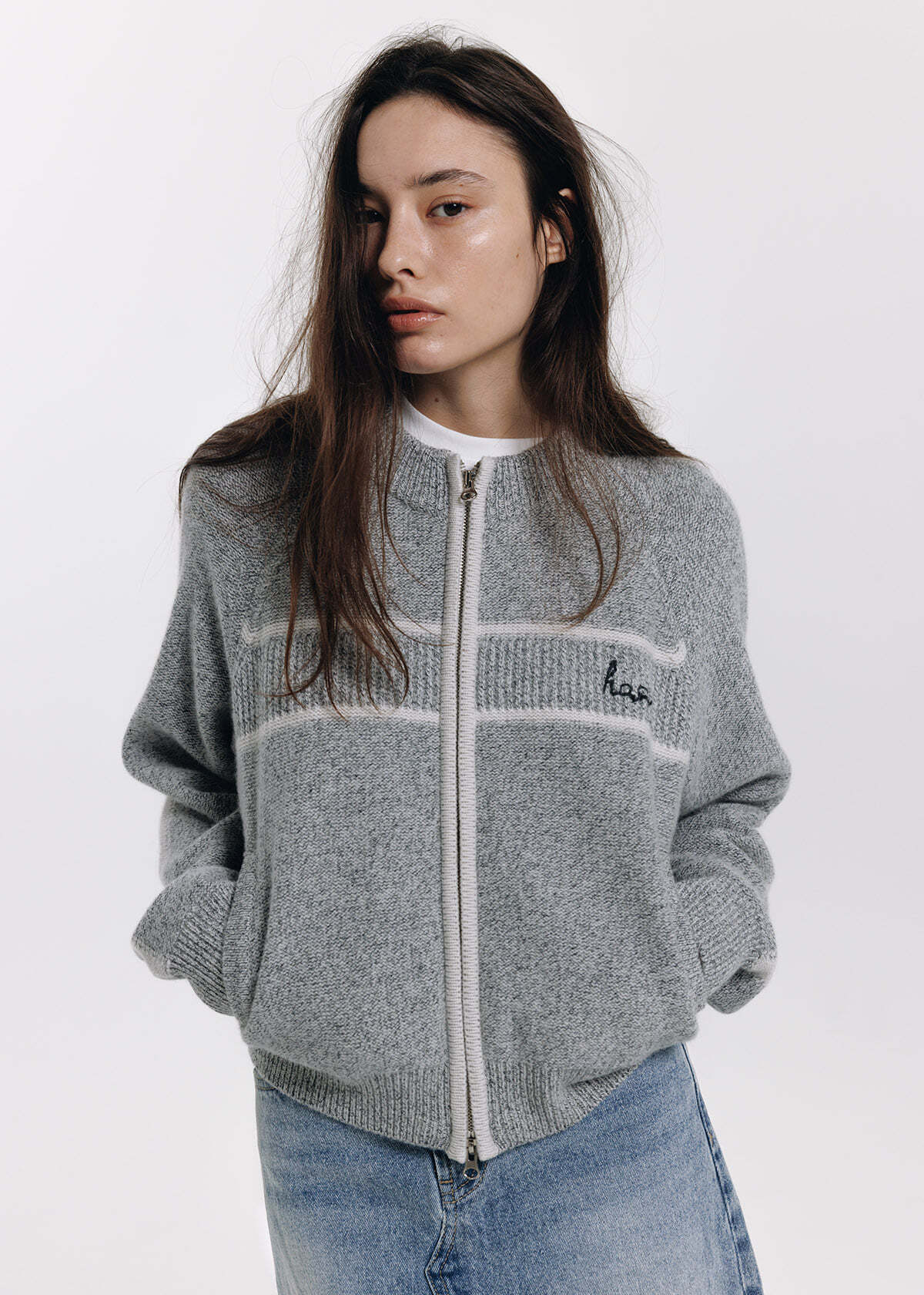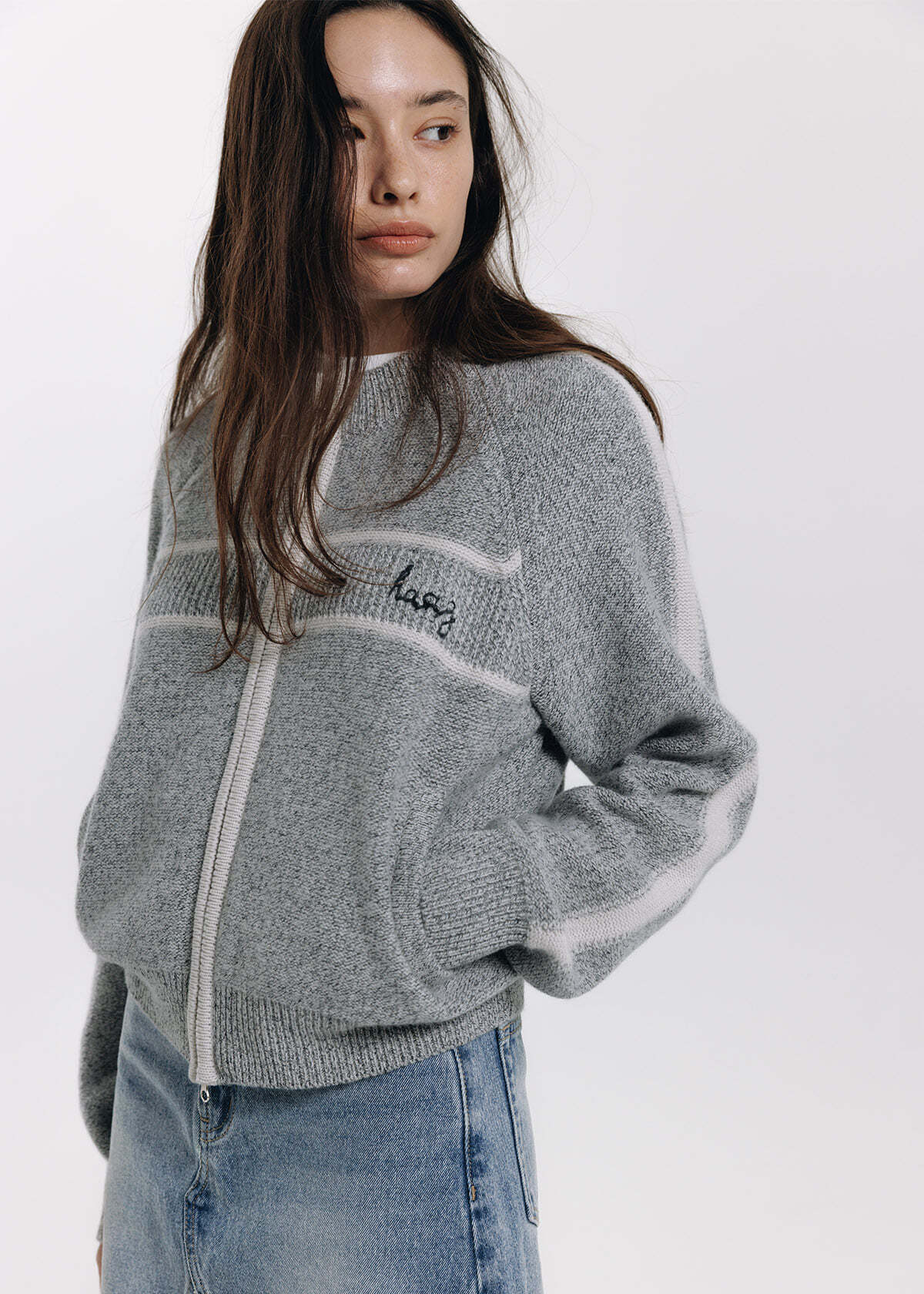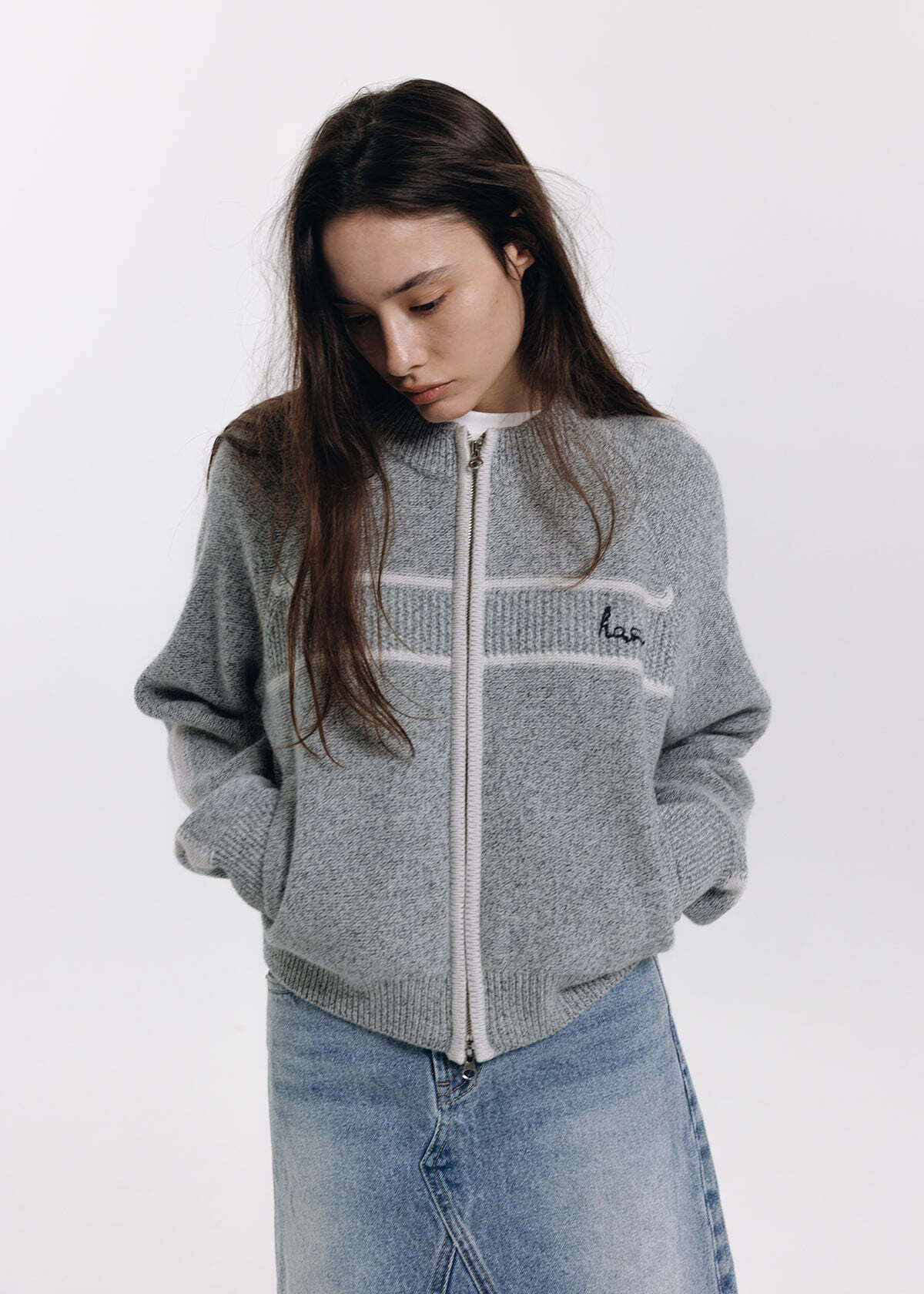 感度の高い配色ラインが目を引く、ニットジップアップカーディガン。