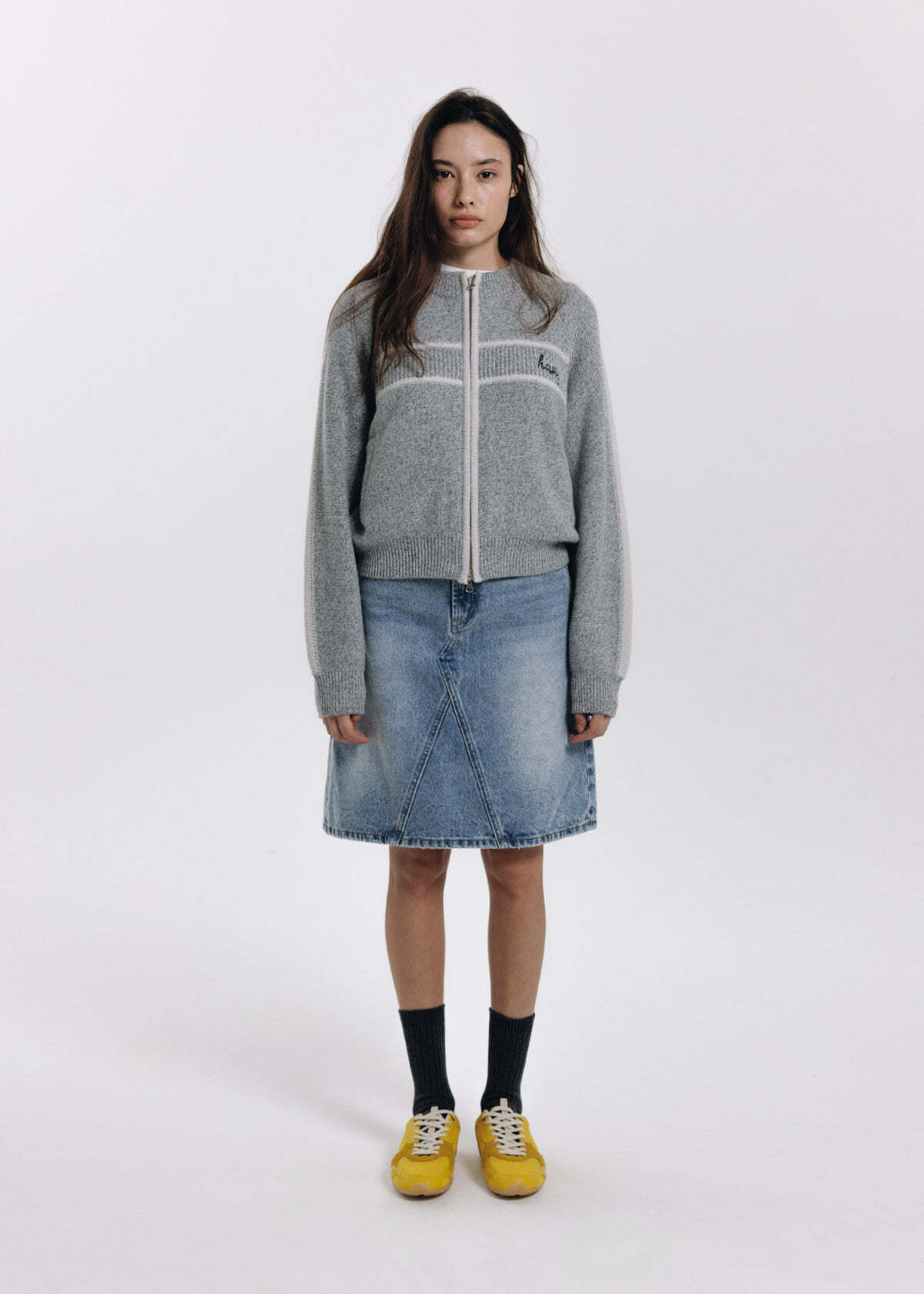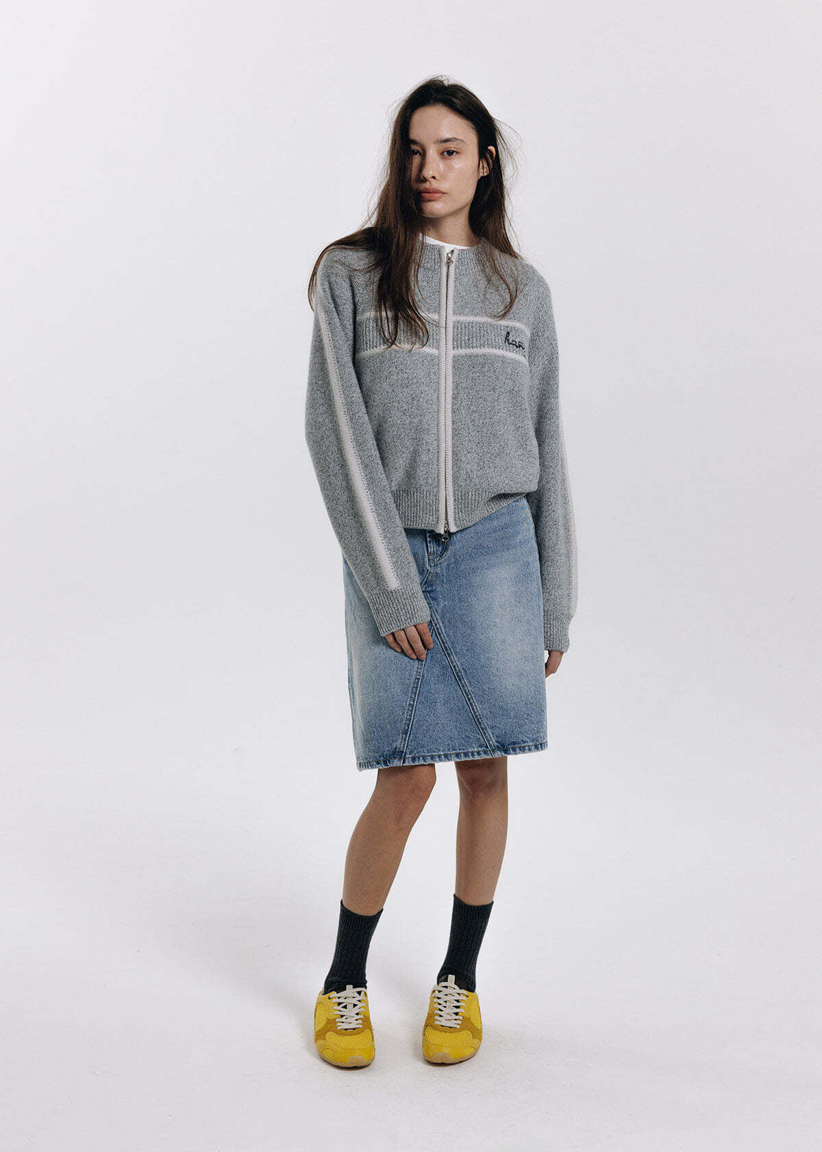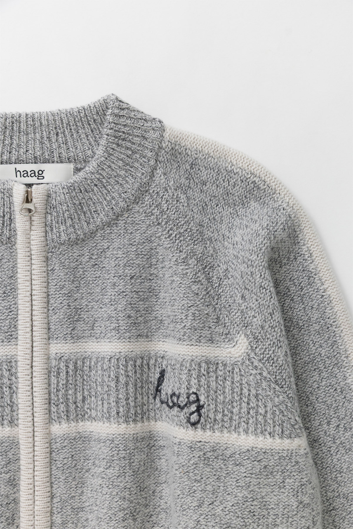 感度の高い配色ラインが目を引く、ニットジップアップカーディガン。