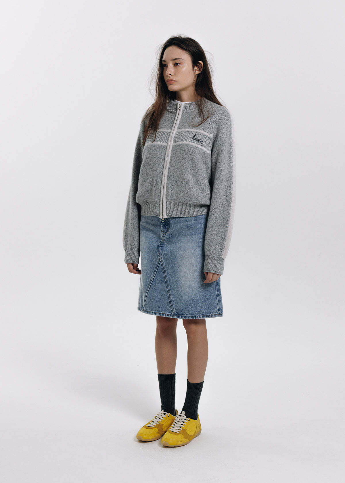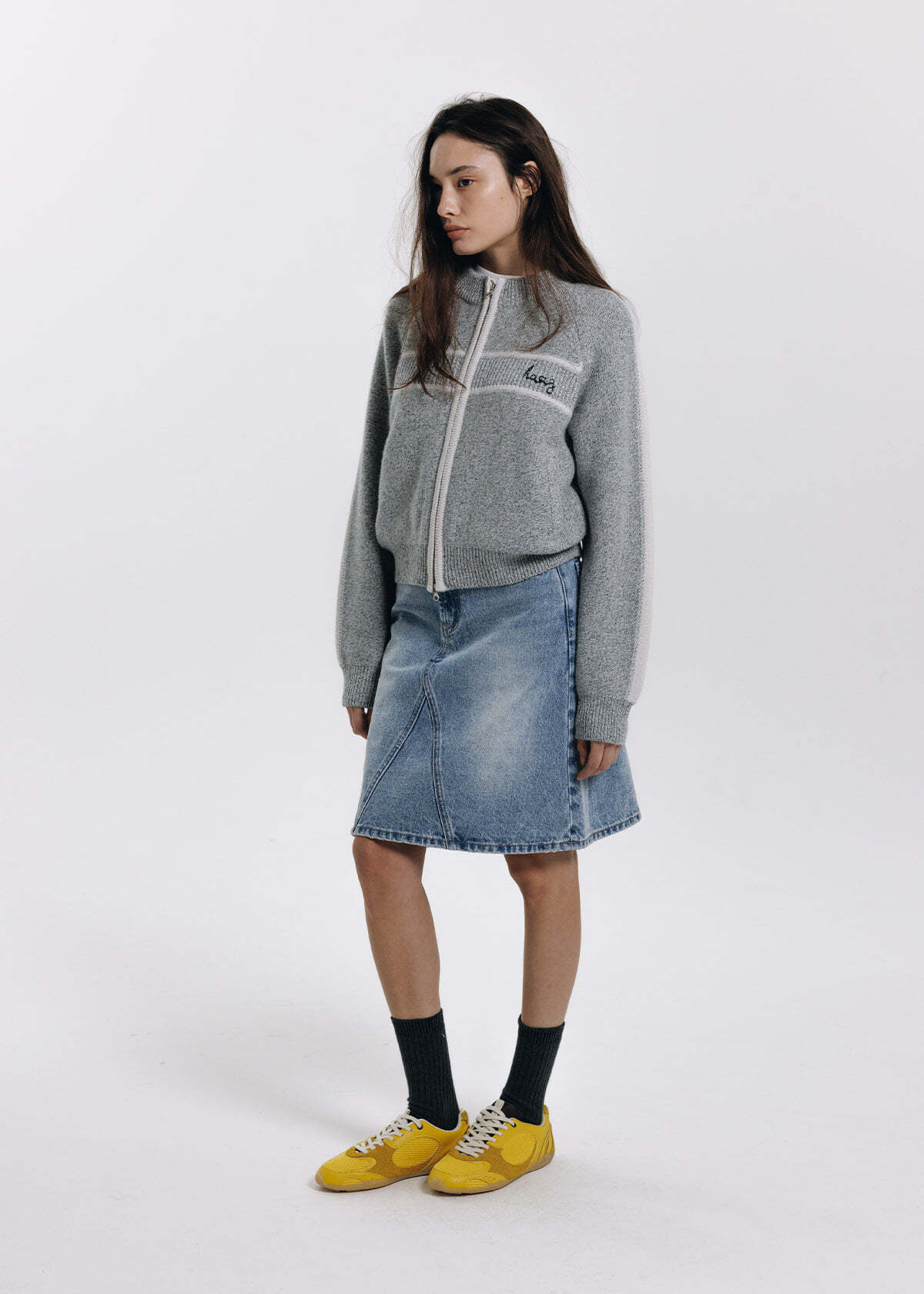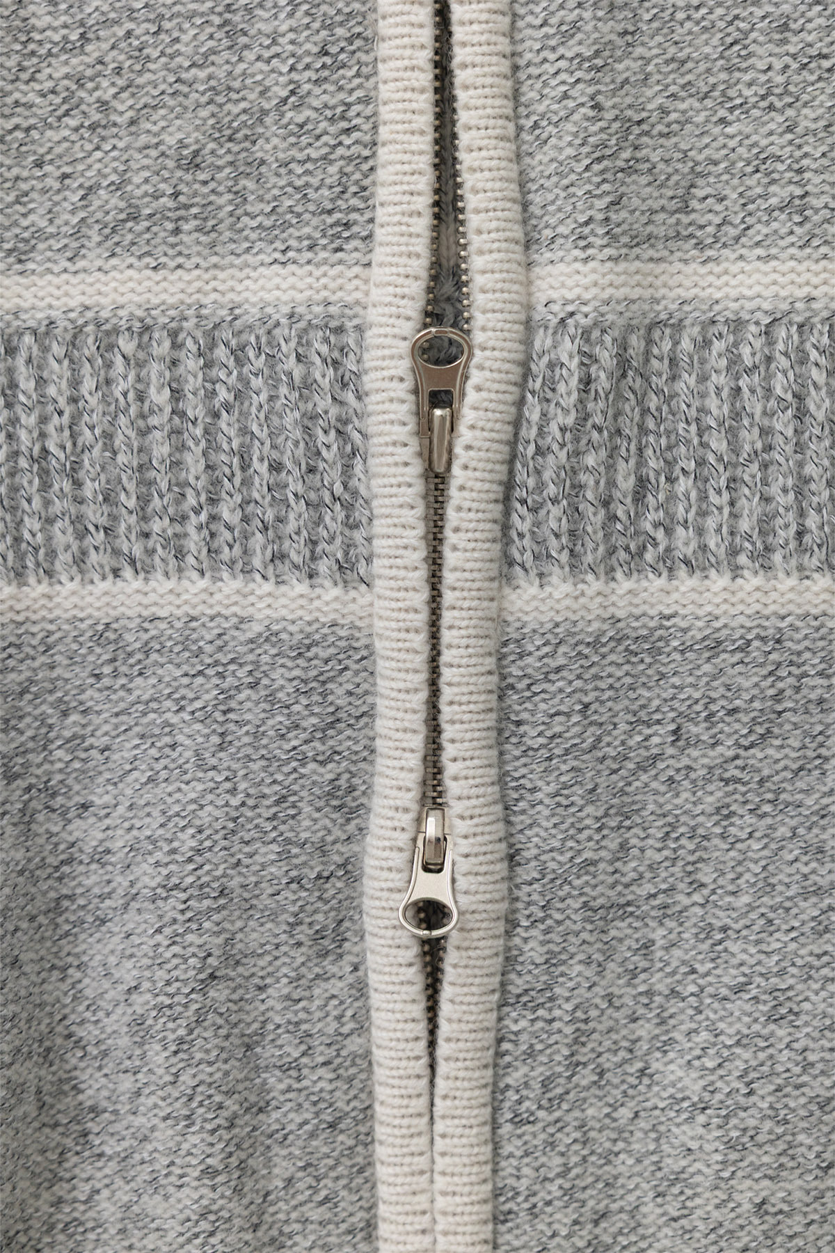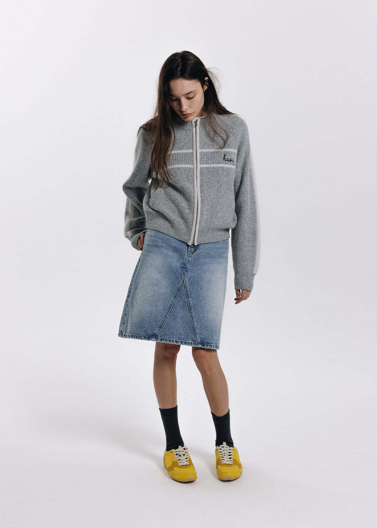 感度の高い配色ラインが目を引く、ニットジップアップカーディガン。