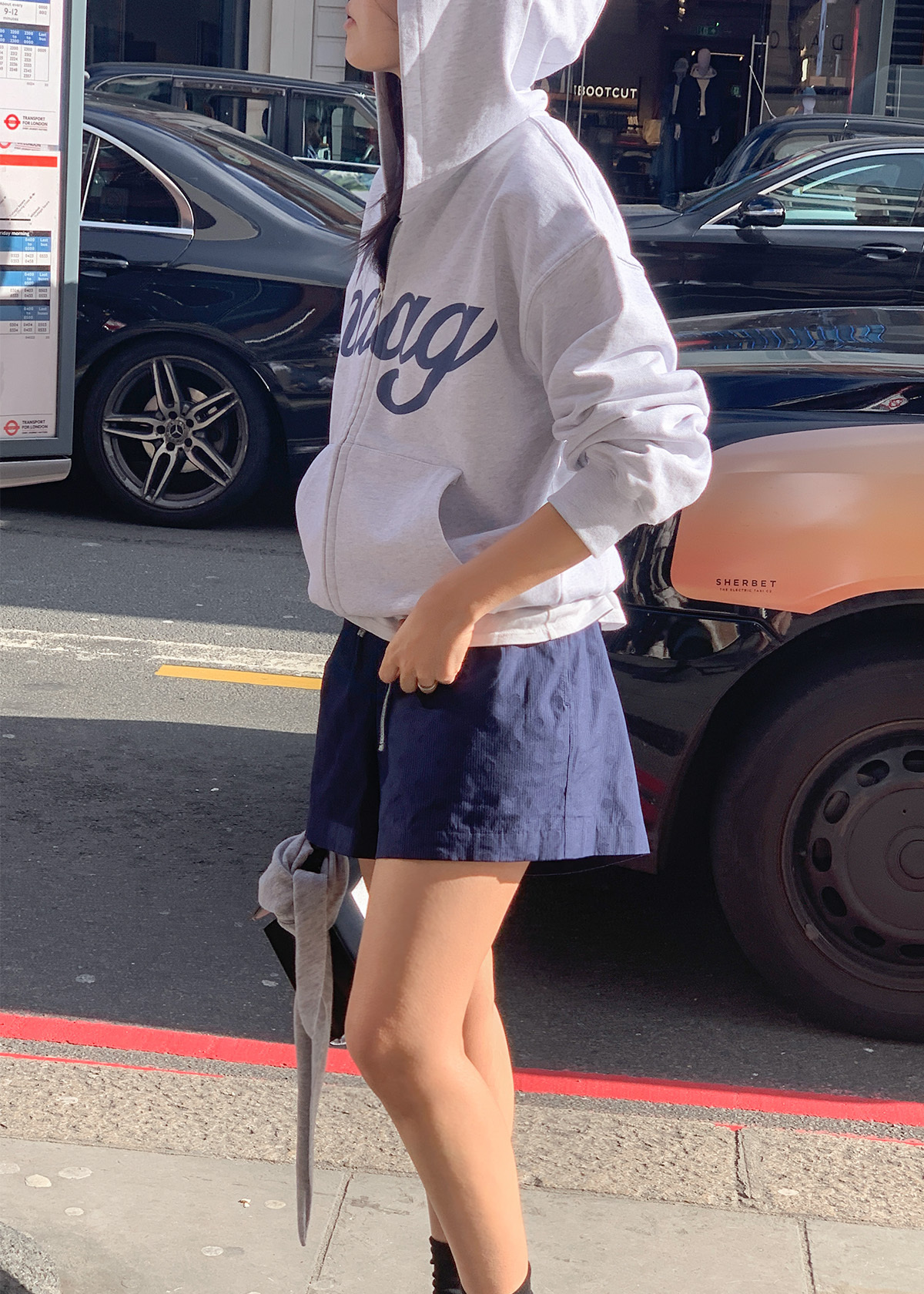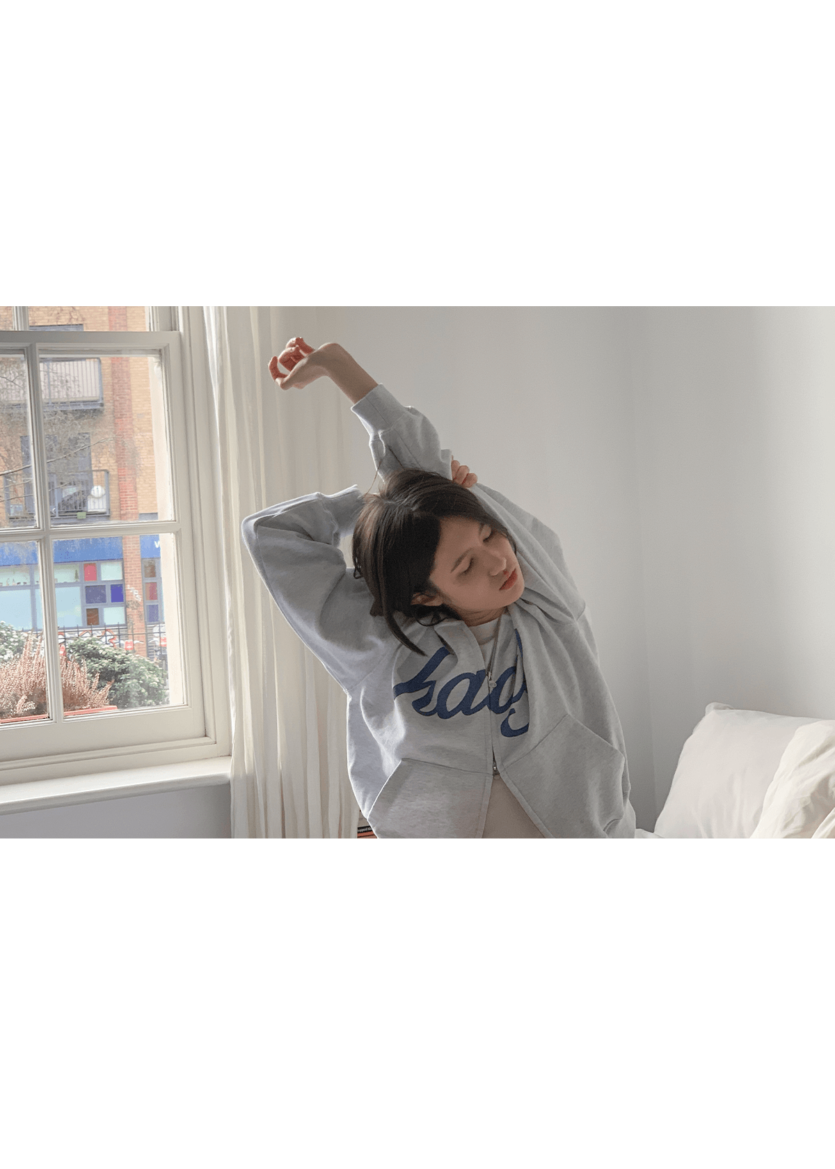 <Haag> a mix hoodie zip-up / light grey