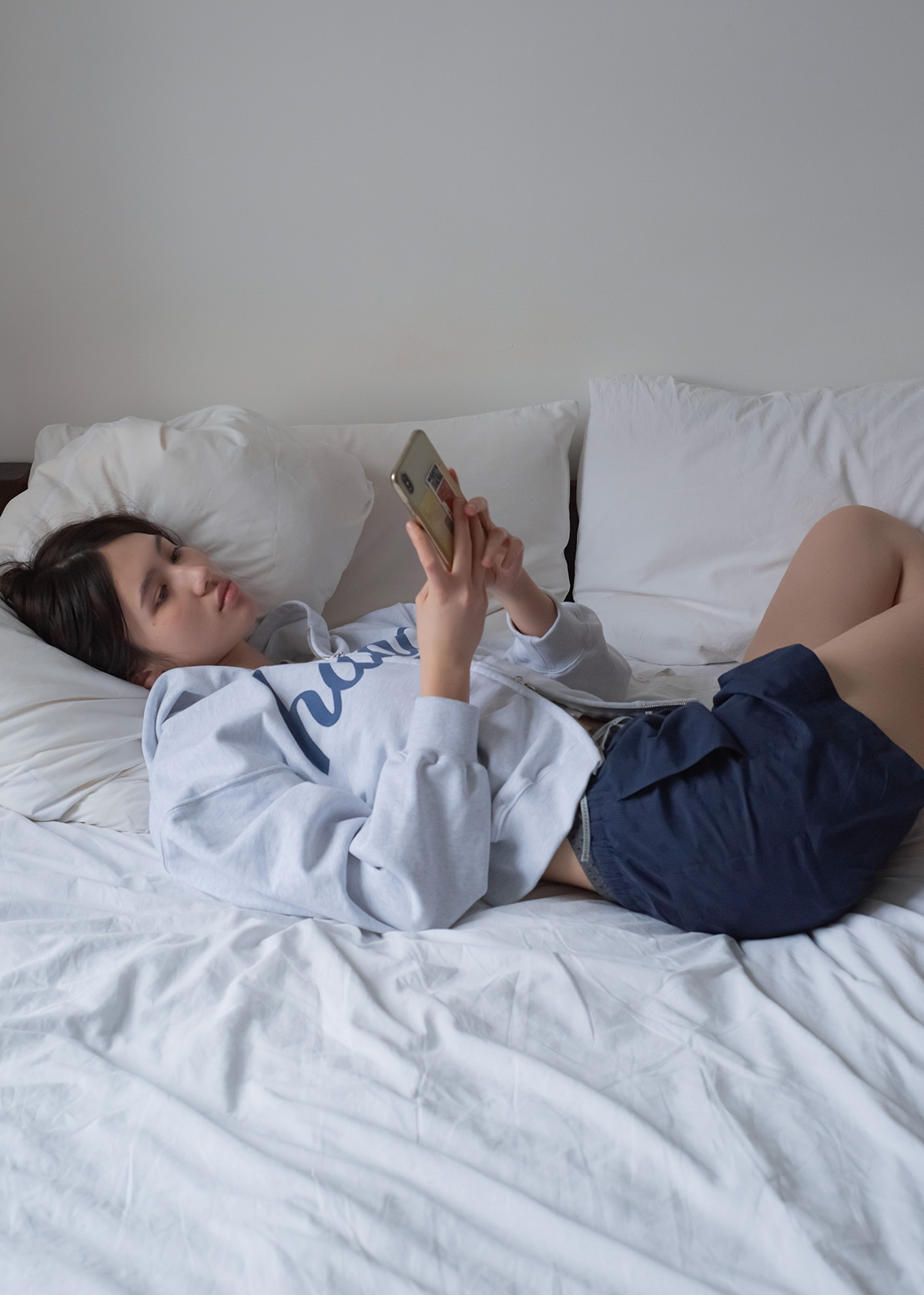 程よくゆとりのある身幅と袖、セミクロップ丈のバランスで動きやすさを確保し、自然でカジュアルな雰囲気を演出。
