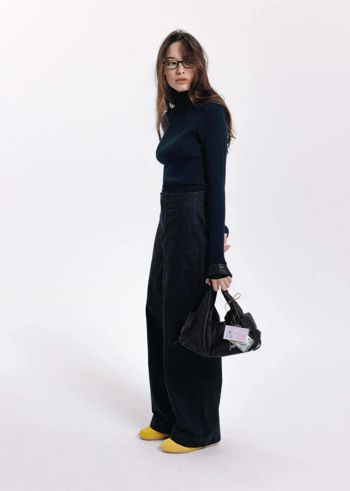 ミニマルなデザインをベースに、フロントと両サイドに立体的なアウトポケットを配置し、高い収納力と構築的なシルエットを両立。