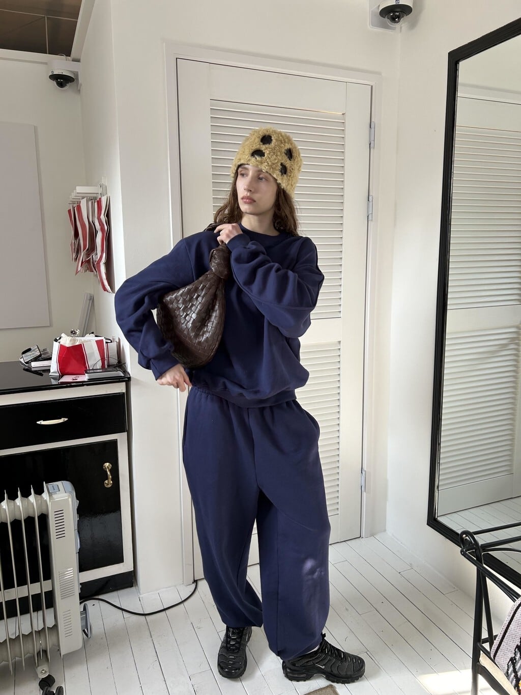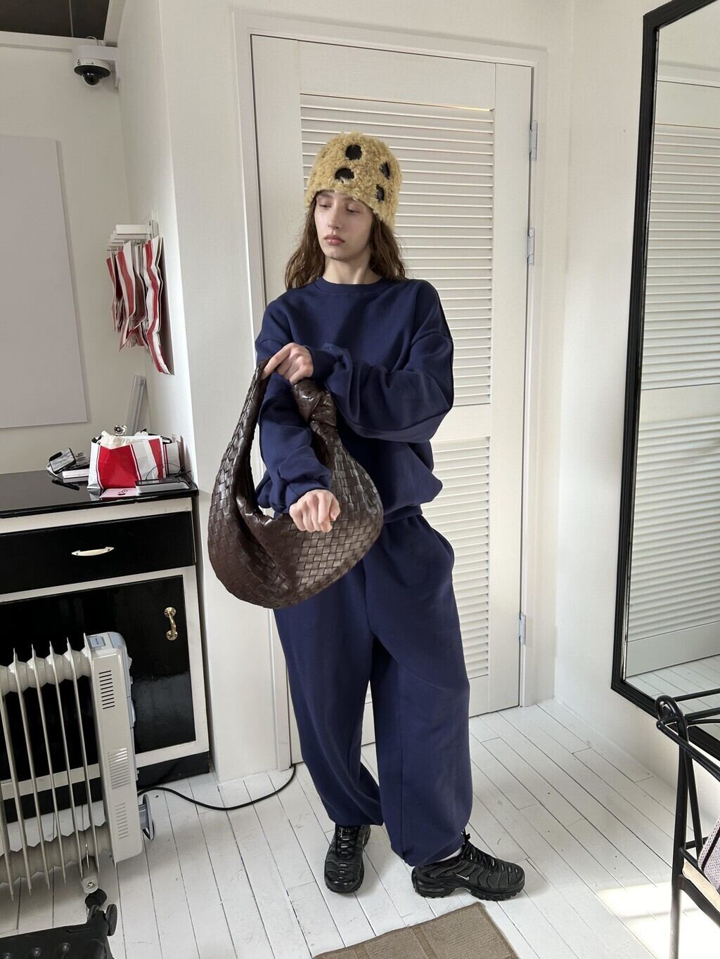 写真は秋冬用に撮影された裏起毛のある商品になります。全く同じフィット・サイズ感です。
