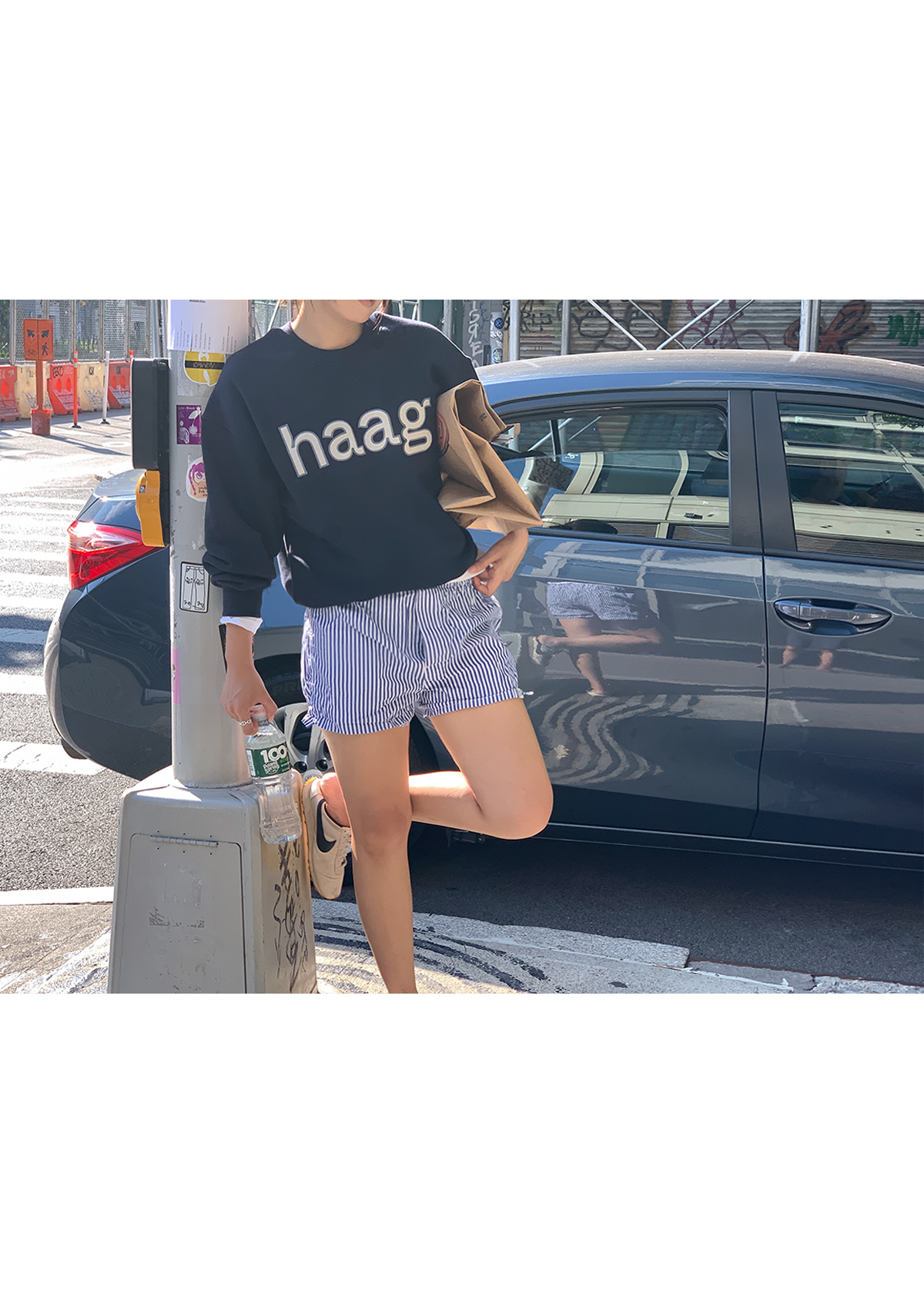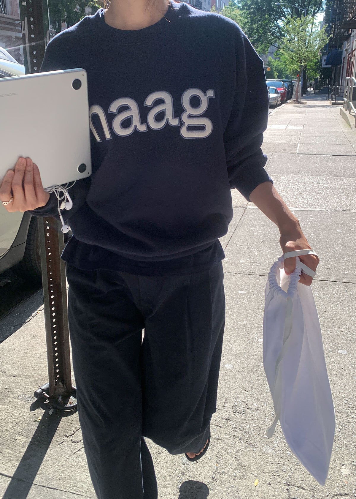 ネイビーはほんの少し短い丈感で、クロップほどではなくても軽快な感じで着用できるよう、グレーより短く製作しています。